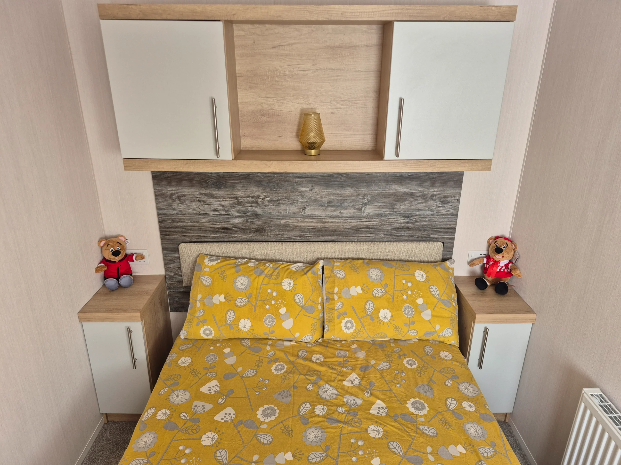 The lounge area has a wonderfully light and airy feel to the space, thanks to the large panoramic front windows and patio doors which lets you just sit back relax and take in the views. The bedrooms have been designed to maximise space and storage. The master bedroom has an en-suite toilet and basin whilst the family bathroom contains a large contemporary shower cubicle and toilet.