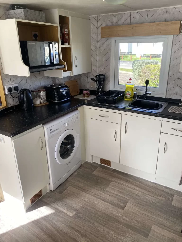 There is the usual gas cooker, fridge and microwave but added to that there is a washing machine and Fridge/Freezer