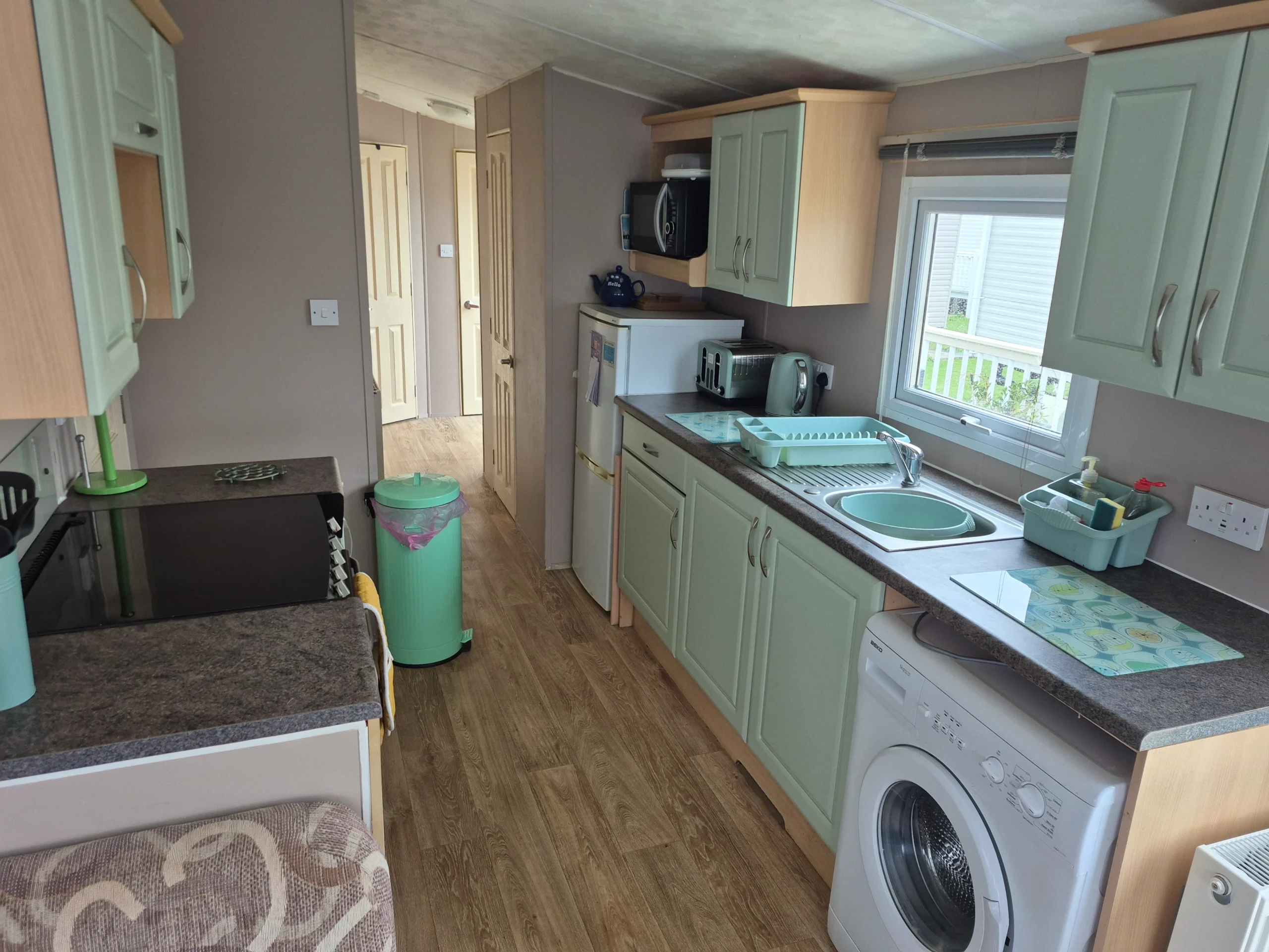 There is the usual gas cooker, fridge, freezer and microwave but added to that there is a washing machine.
